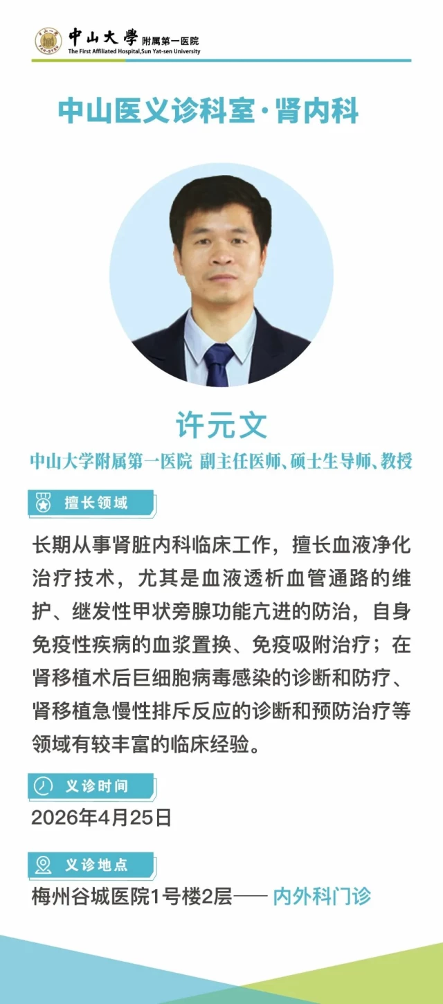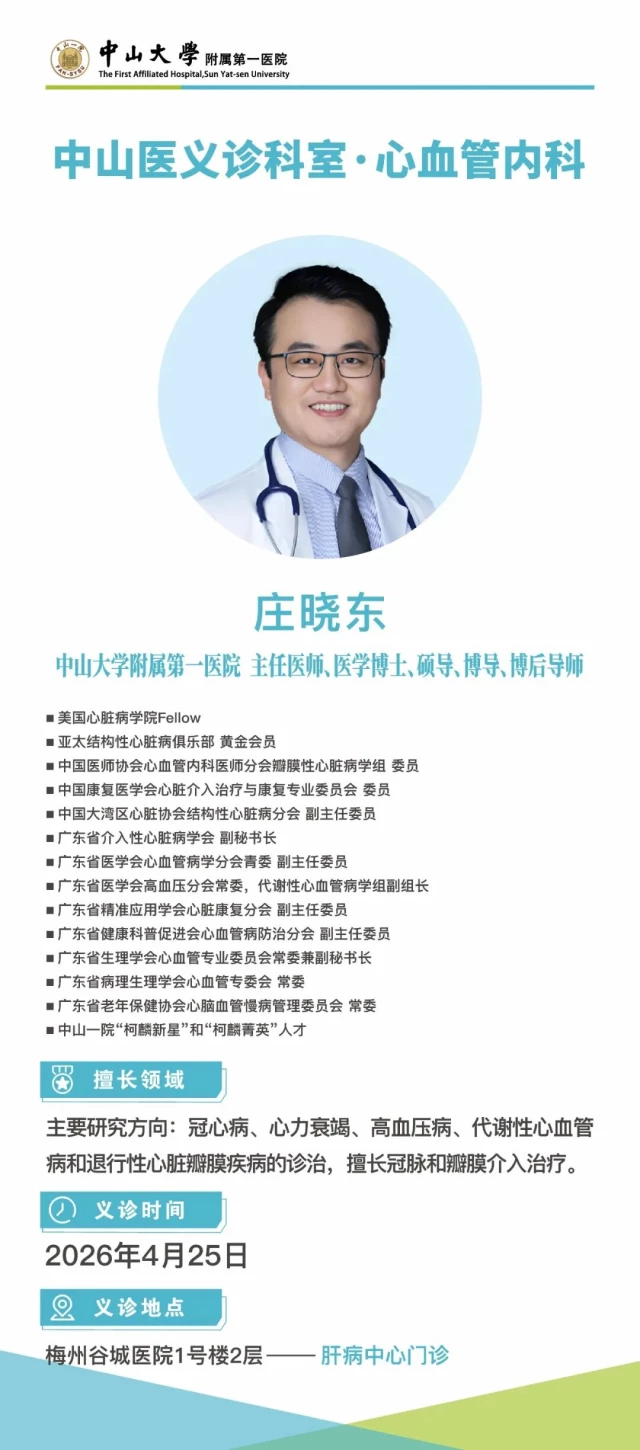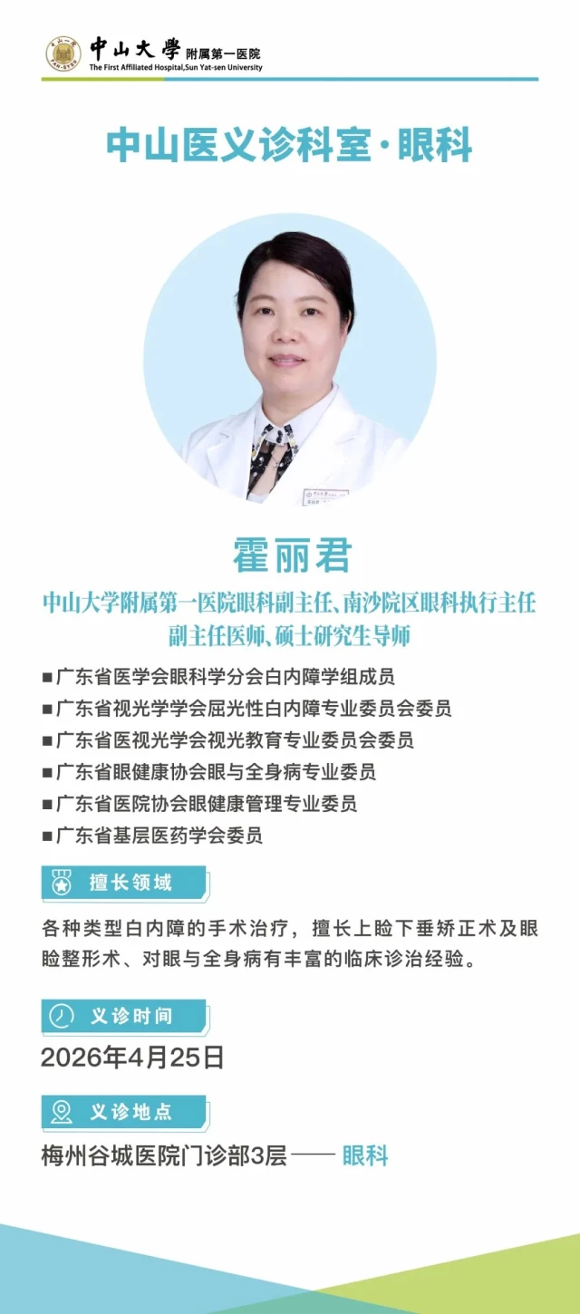 义诊预告 | 廖新学教授领衔中山医义诊团将在4月25日抵达梅州谷城医院
